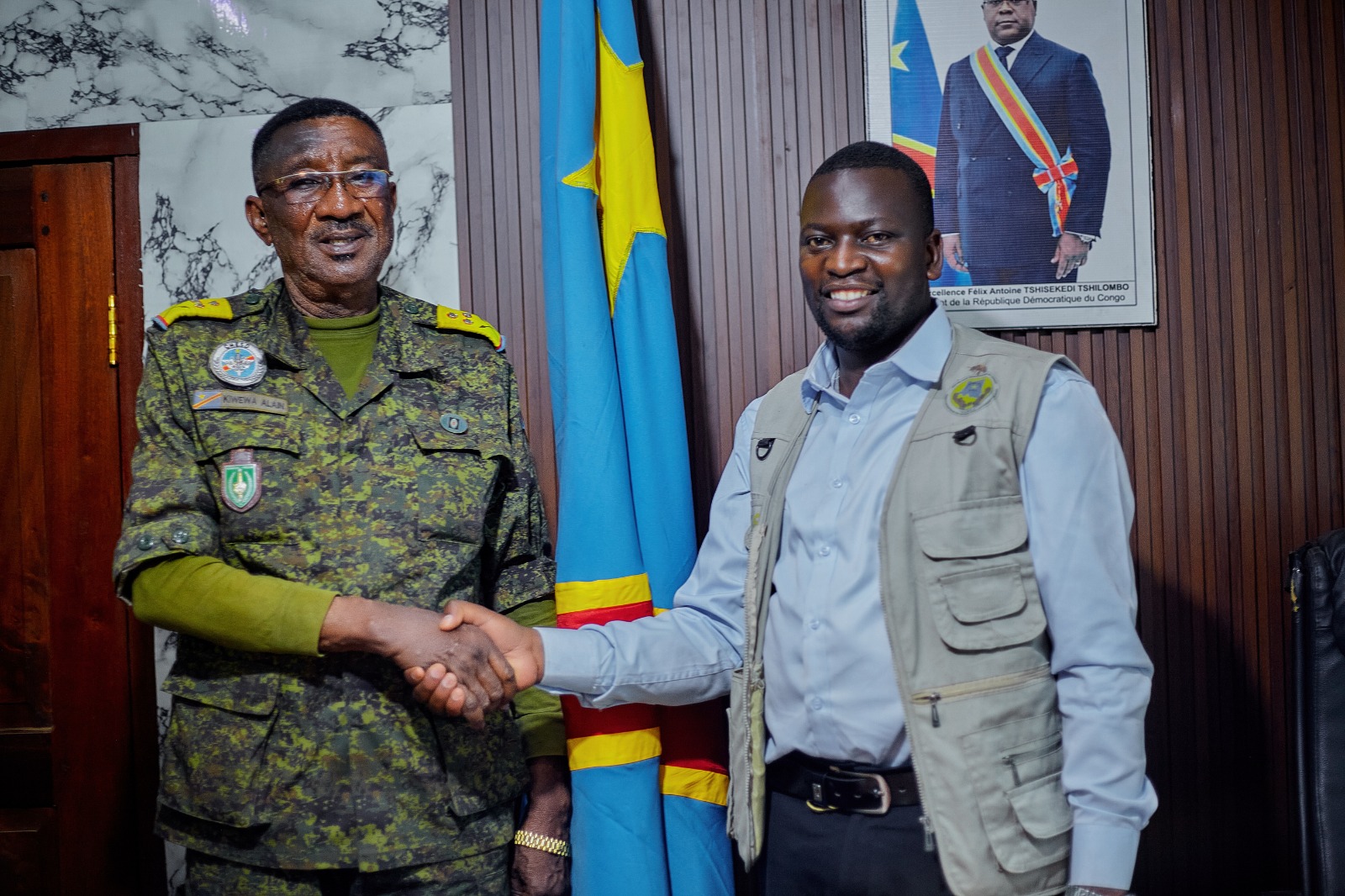 En rĂ©ponse, lâAdministrateur Militaire du territoire de Lubero Le Colonel Alain KIWEWA MITELA a saluĂ© les efforts du Groupe AcadĂ©mia RDC et encouragĂ© particuliĂšrement lâengagement des jeunes dans lâentrepreneuriat. Il a Ă©galement reconnu la valeur stratĂ©gique de lâapiculture, notamment Ă travers les multiples vertus du miel, tant sur le plan nutritionnel que sanitaire.